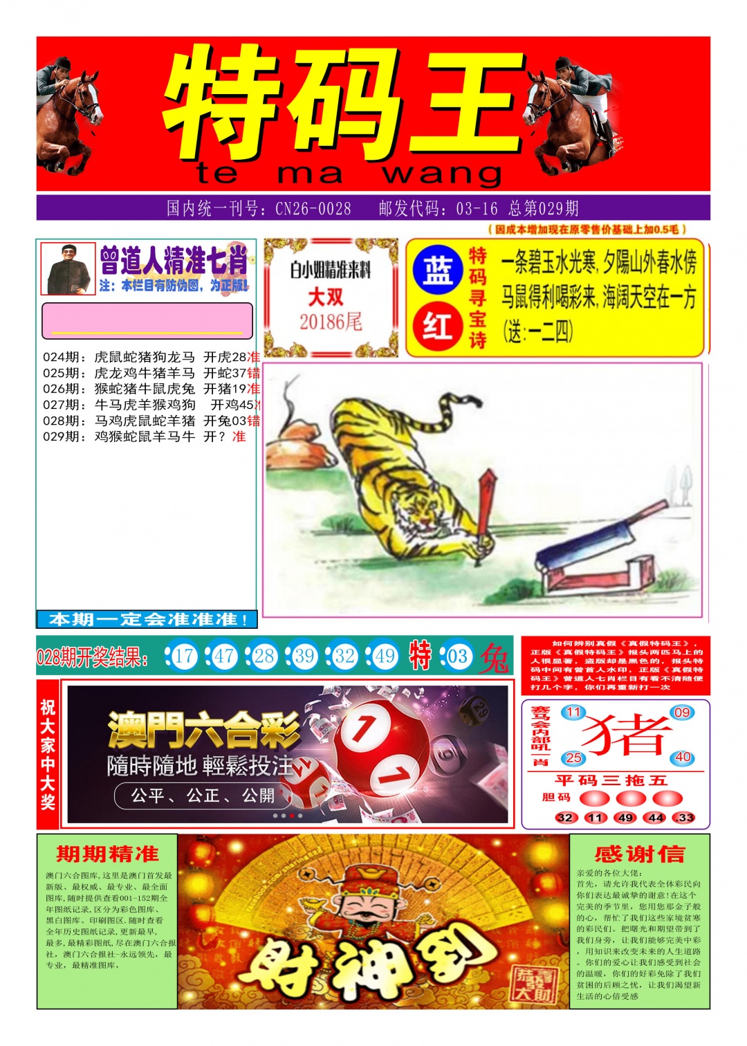 | 024期: | 鸡猴狗虎 | 开:虎28 |